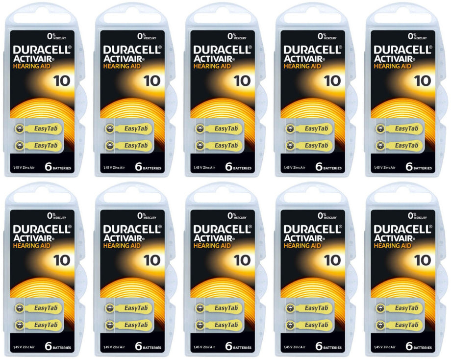 Duracell Size 10 Hearing Aid Batteries - DA10B6 EasyTab - 60 Battery Box